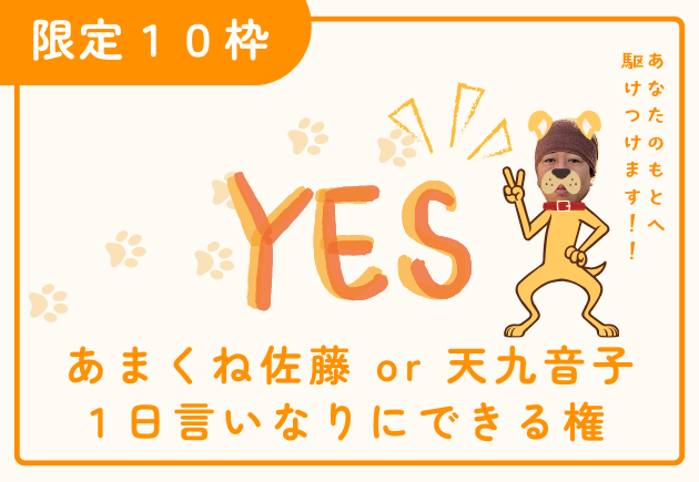 あまくね佐藤 or 天九音子に1日好きなことをお願いできる権利です。