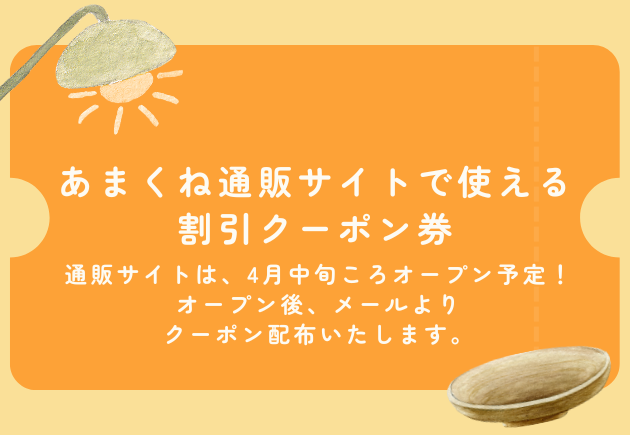 ・クーポンは、あまくね通販サイトがオープンしてからご利用いただけます。